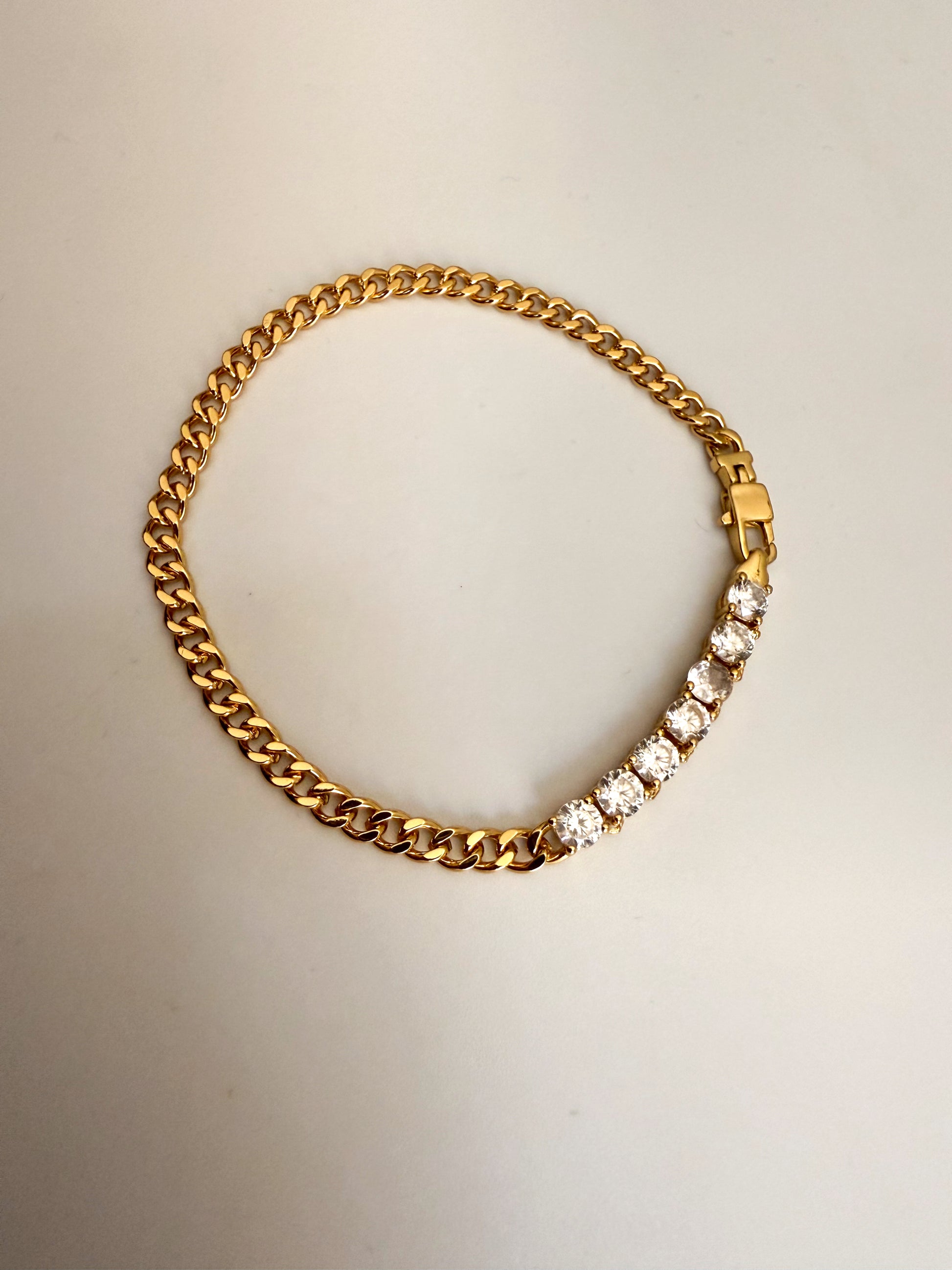 Indulge in luxury with the Celia Bracelet. Adorn your wrist with this delicate 7" bracelet crafted with a stunning 8mm goldfield chain. Elevate any outfit with this sophisticated and exclusive piece inspired by the world of art and fashion. Find your inner elegance with the Celia Bracelet.