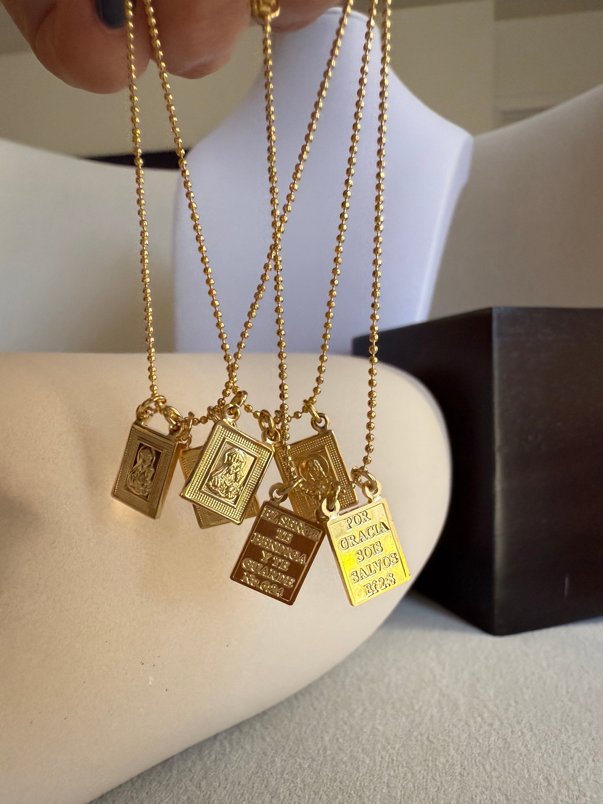 Indulge in the luxurious elegance of our Gold Scapular bracelet. Crafted with a dazzling goldfield material, this bracelet exudes sophistication and exclusivity. Elevate your style and showcase your refined taste with this intricate piece of art that delicately adorns your wrist. Embrace the essence of luxury with our Gold Scapular bracelet.