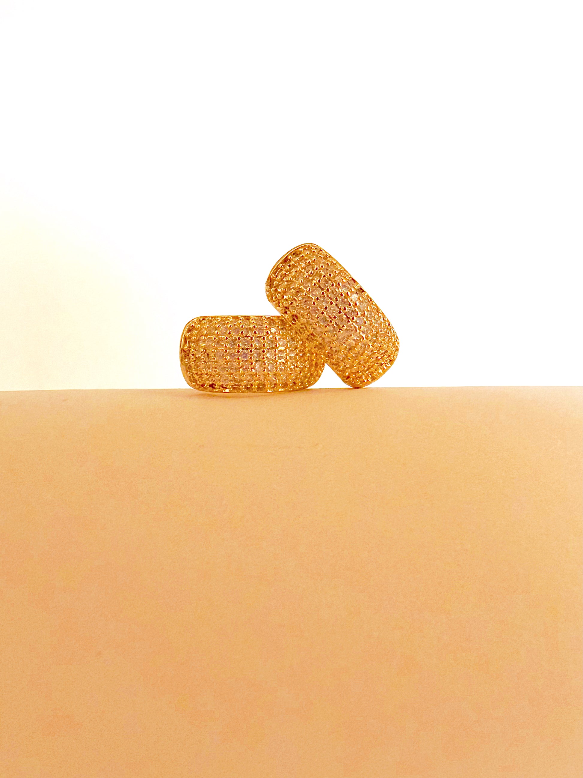 Micropave Hoops Earrings Indulge in luxury with our exquisite Earrings. These stunning Gold plated Hoops adorned with sparkling Cz stones add a touch of class to any outfit. Elevate your style with the glamorous and exclusive allure of these Earrings.