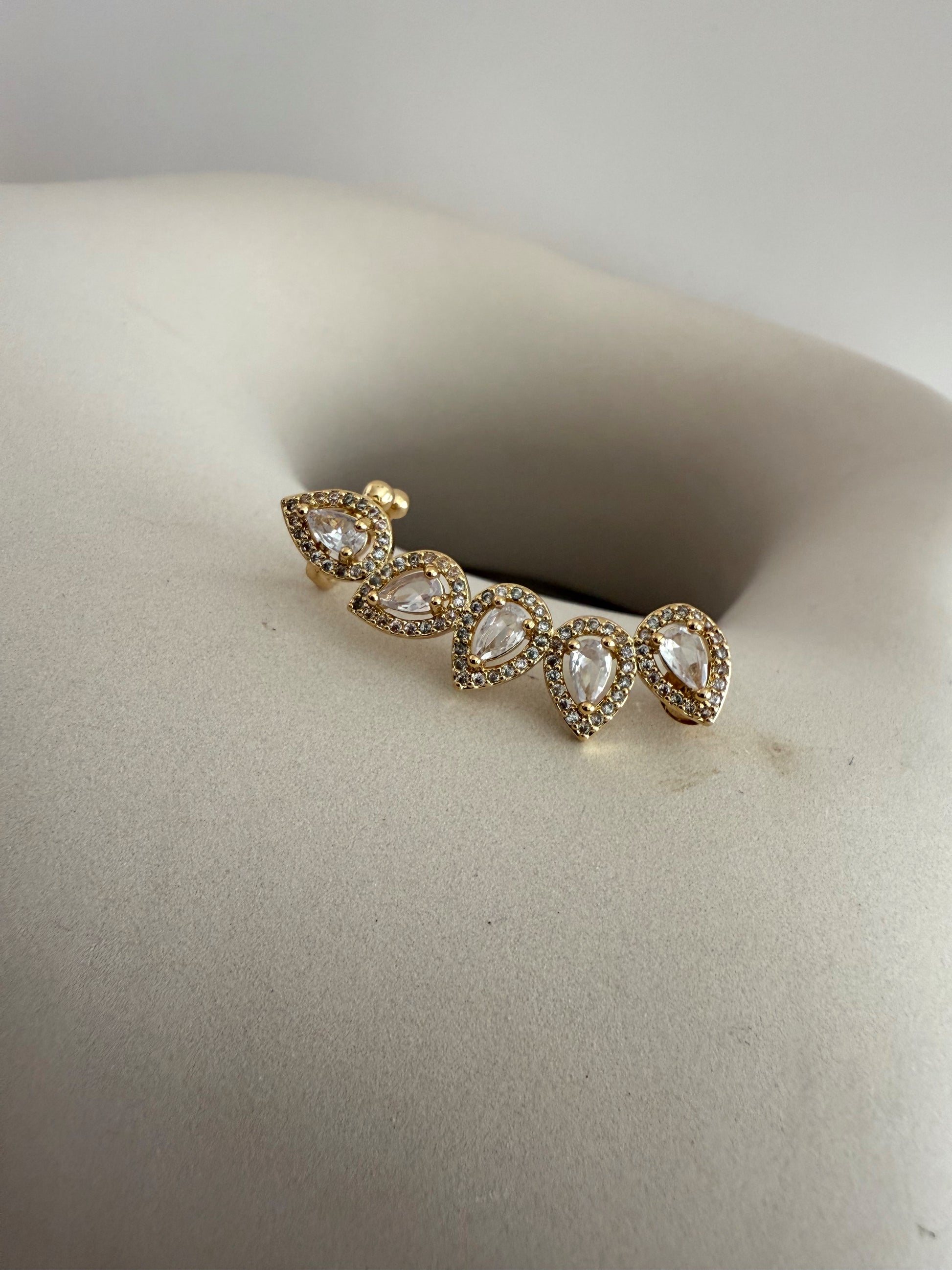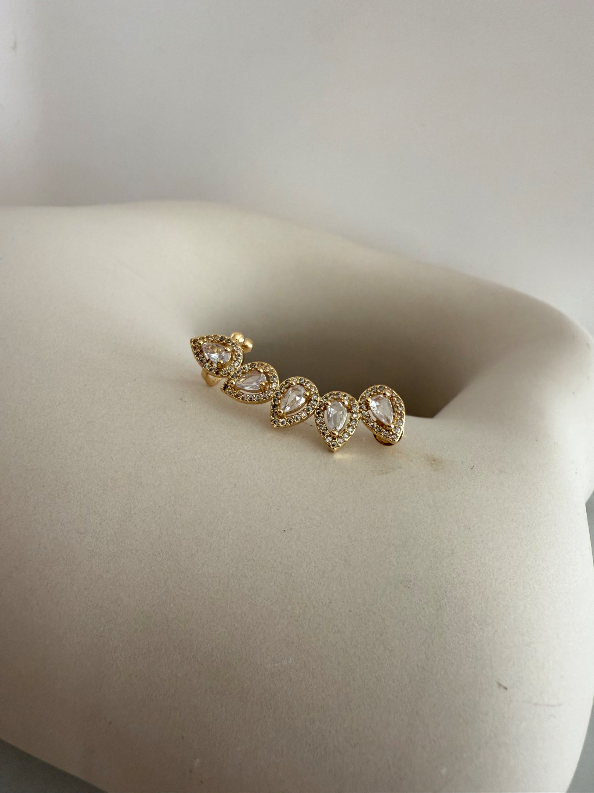 Elevate your look with the Stads Earpiece, a gold-plated accessory adorned with delicate gem crystals. Its refined design adds a touch of elegance to any outfit, making it an ideal choice for both everyday wear and special occasions. This trendy yet timeless piece complements your style with subtle sparkle and sophistication.