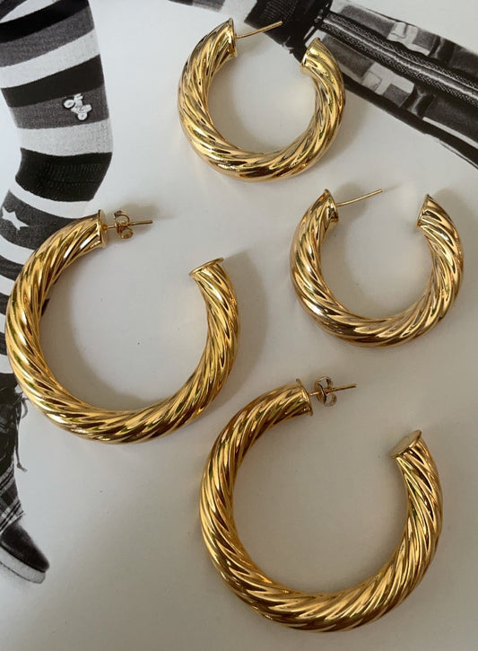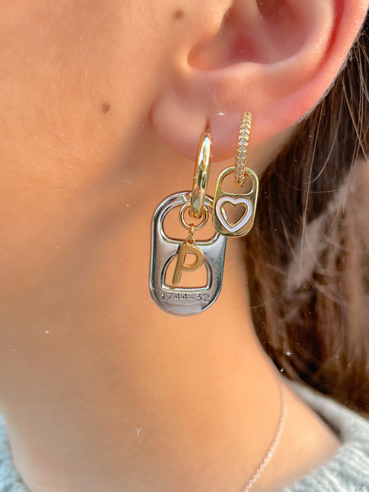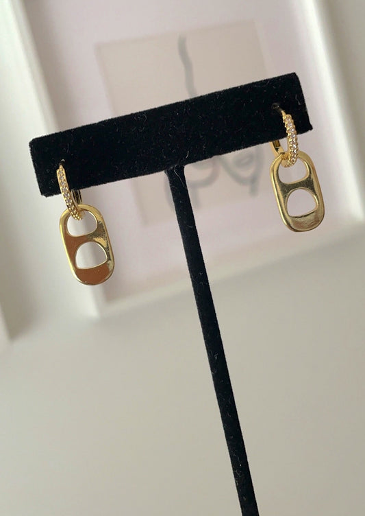 Pendientes de tapa de refresco de oro liso con aros de circonitas