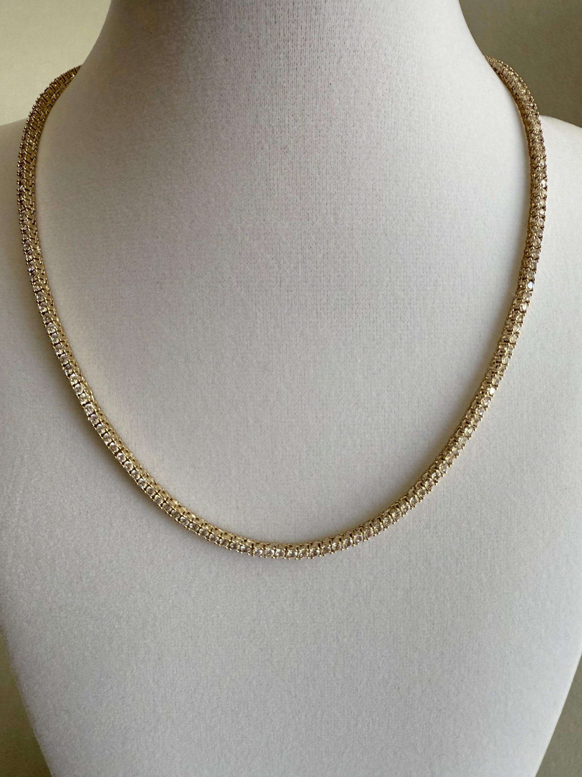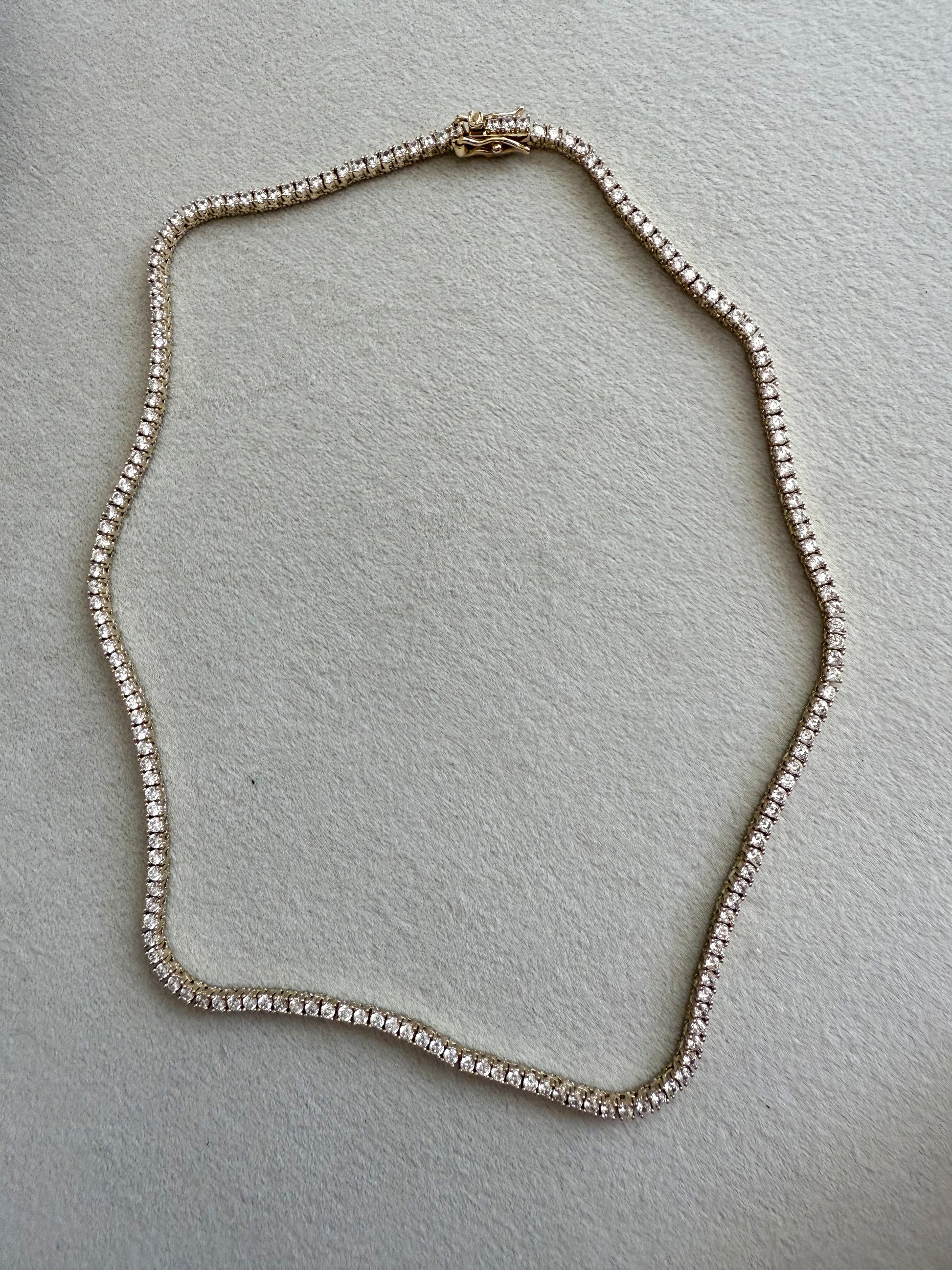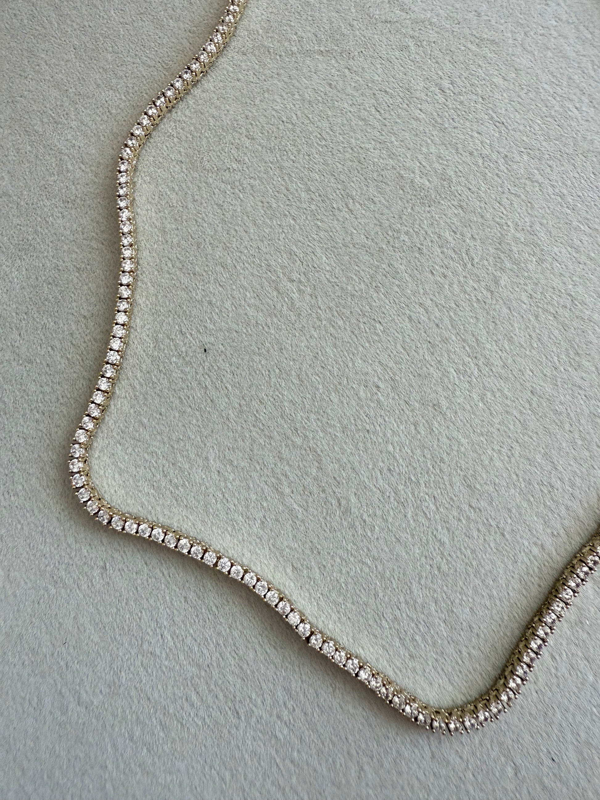 Indulge in timeless elegance with our 2mm Tennis Necklace. Made with 18K gold fill and embellished with sparkly cubic zirconia stones, this choker adds sophistication to any outfit. With its delicate design and premium materials, it's the perfect accessory for any occasion. Elevate your style and feel like royalty with this exclusive piece.