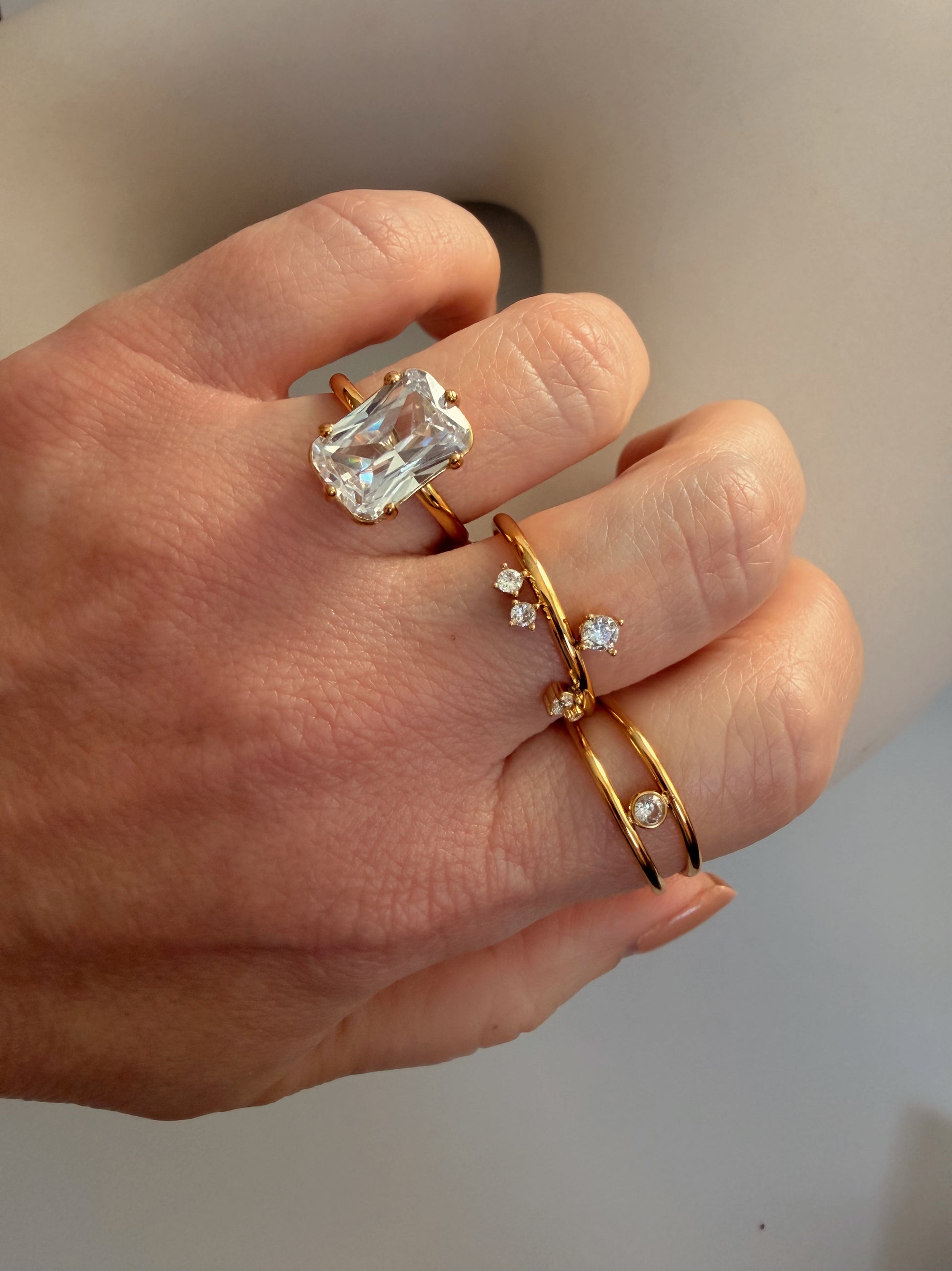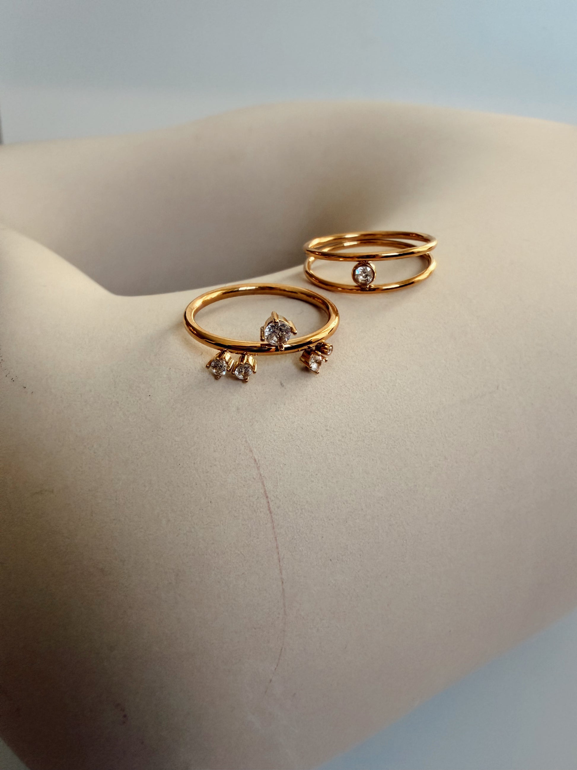 Introducing The Nova Orbit Stack, a harmonious ensemble of the Nova Cluster Ring and Orbit Band Ring, exquisitely crafted from lustrous stainless steel and adorned with shimmering zircon.