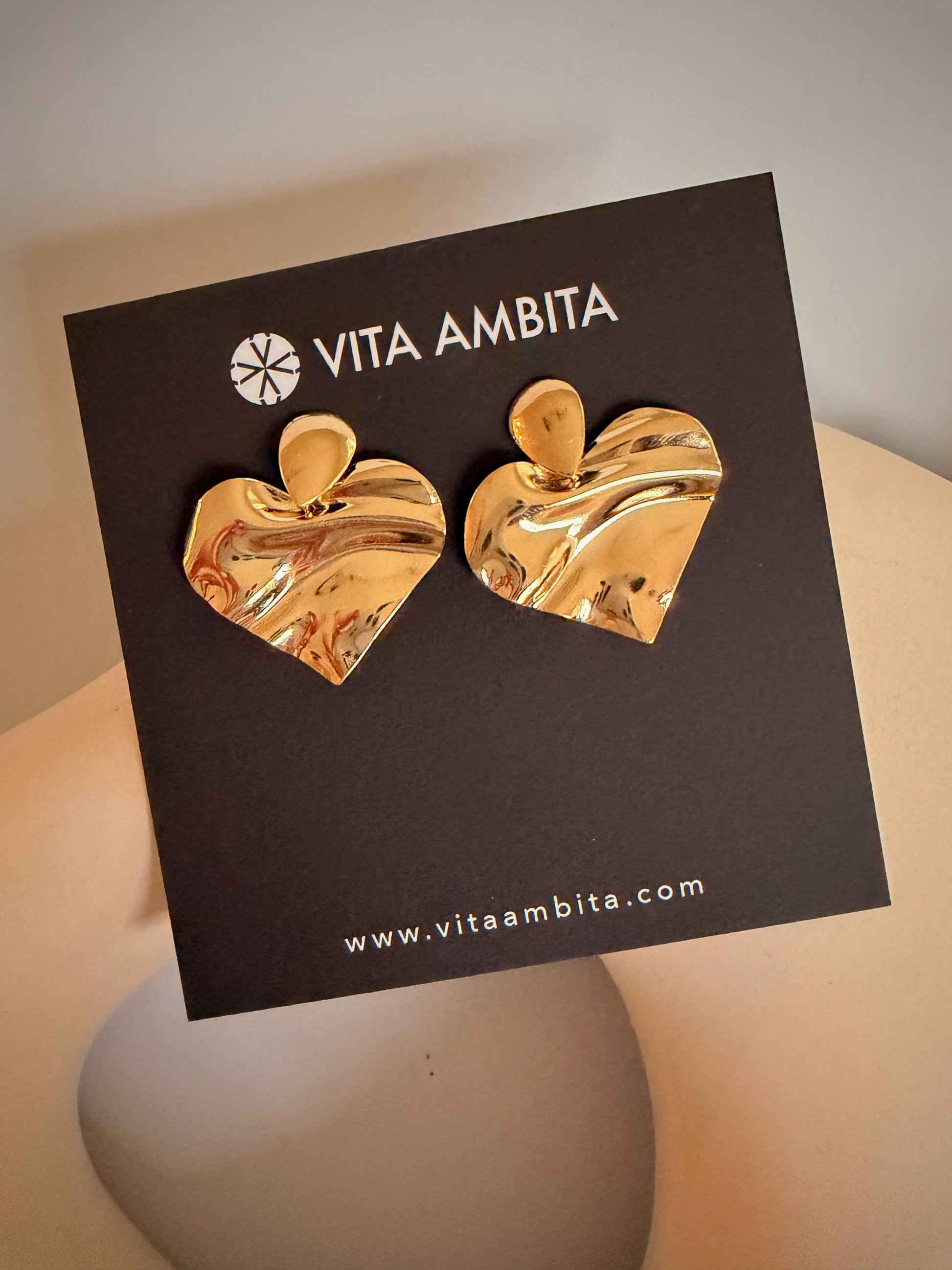Enchanting and elegant, these heart dangle shaped post back earrings are crafted with gold filled wavy metal to add a touch of sophistication to your look. Perfect for everyday wear or special occasions, these earrings are sure to make a statement.